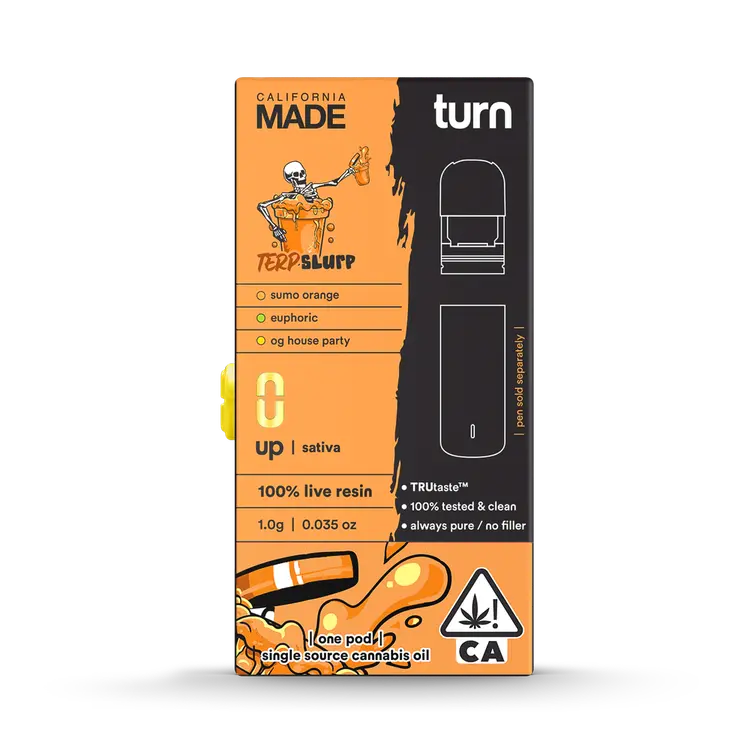Turn Pods Terp Slurp delivers a bold and aromatic flavor profile that reflects the benefits of live resin extraction. The taste is smooth, rich, and terpene-forward, giving users a flavorful experience that remains consistent throughout the pod. Because the oil retains natural cannabis compounds, each draw offers a fresh and authentic taste that highlights the strain’s unique characteristics.
