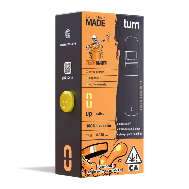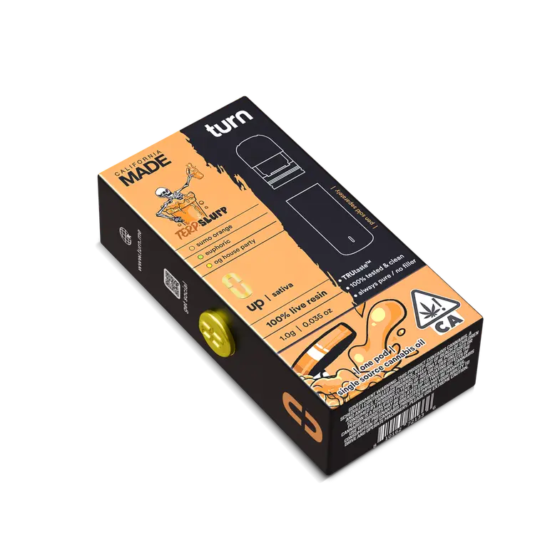 The Turn Pods MADE x Turn Terp Slurp 1G 100% Live Resin THC Vape Pod stands out for its purity, performance, and premium design. Turn’s commitment to quality ensures reliable vapor production, smooth airflow, and consistent flavor in every session. The compact pod format offers convenience and portability without sacrificing the rich taste and potency expected from live resin products.