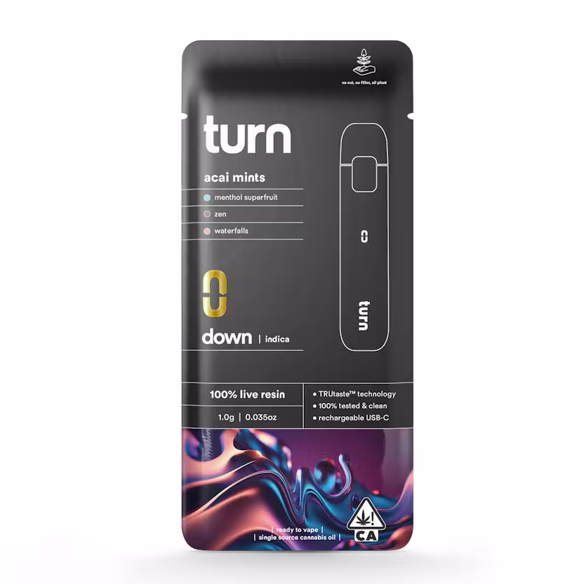 Turn Disposable 1.0g AIO Acai Mints 100% Live Resin Indica Weed Pen – THC 90%