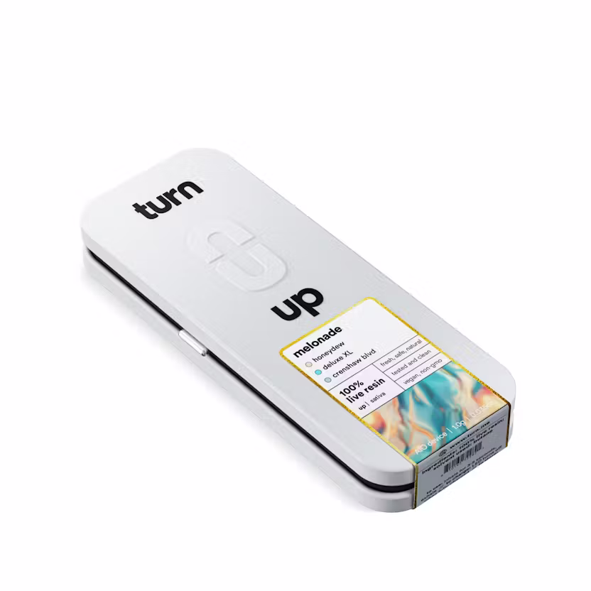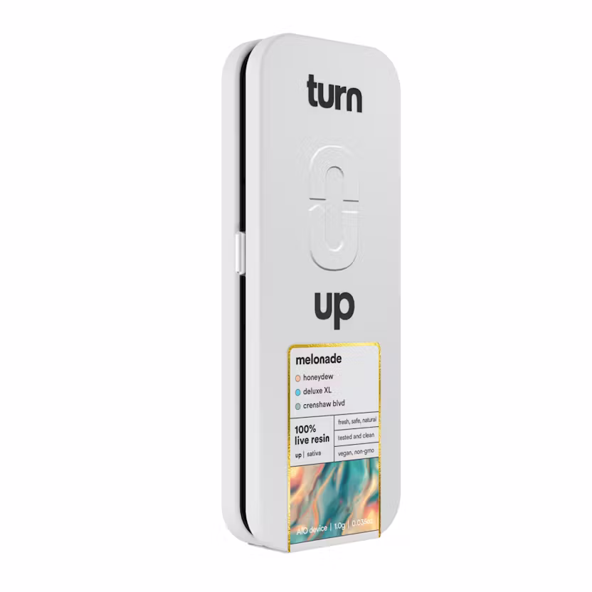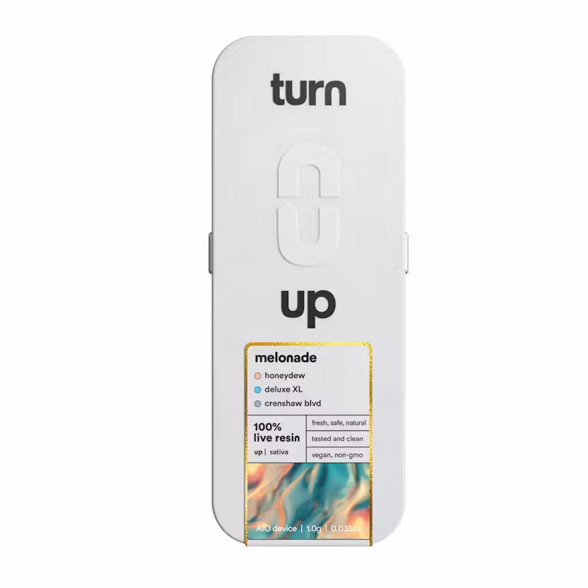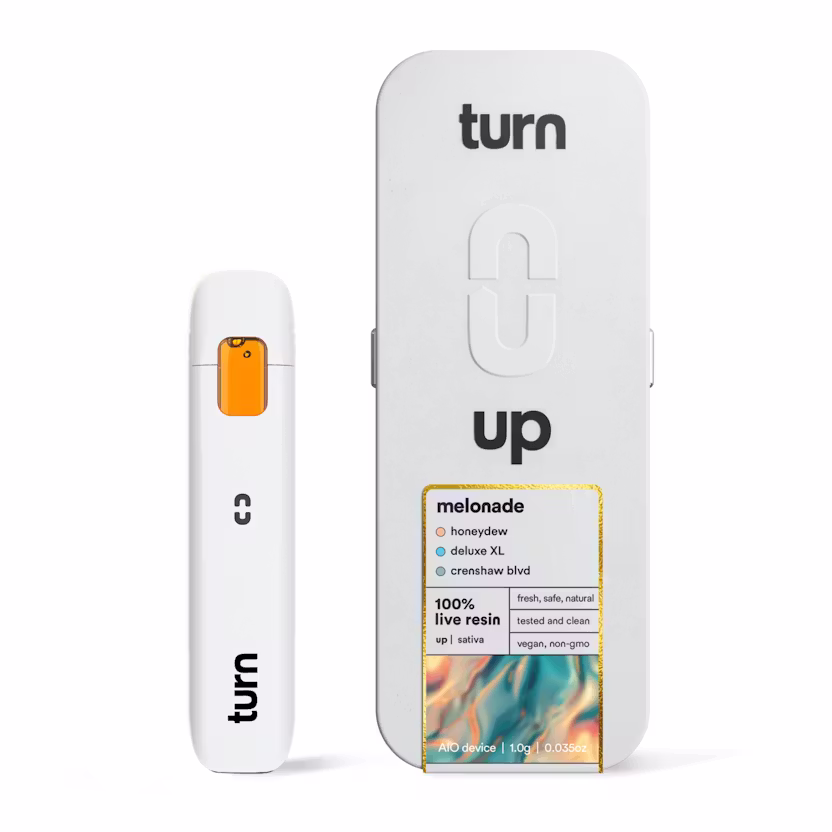 With 80.59% THC, refreshing melon-citrus flavor, and premium live resin oil, the Turn Disposable 1.0g AIO Melonade Sativa Weed Pen delivers a clean, flavorful, and energizing cannabis vaping experience every time.
