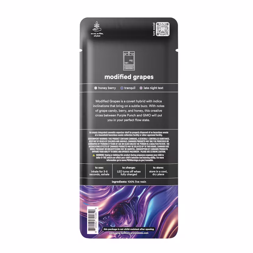 Every puff captures the authentic Modified Grapes experience, from aroma to effect.