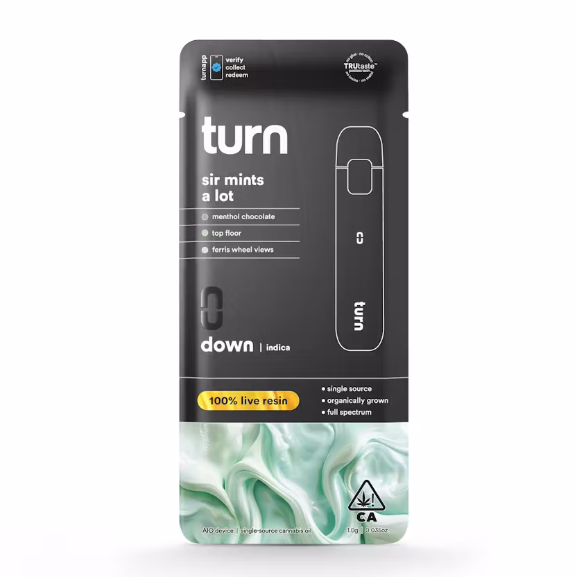 Whether you are a seasoned cannabis consumer or new to live resin disposables, the Turn Sir Mints A Lot AIO pen offers consistent vapor, authentic strain flavor, and premium oil quality in a sleek, ready-to-use device.