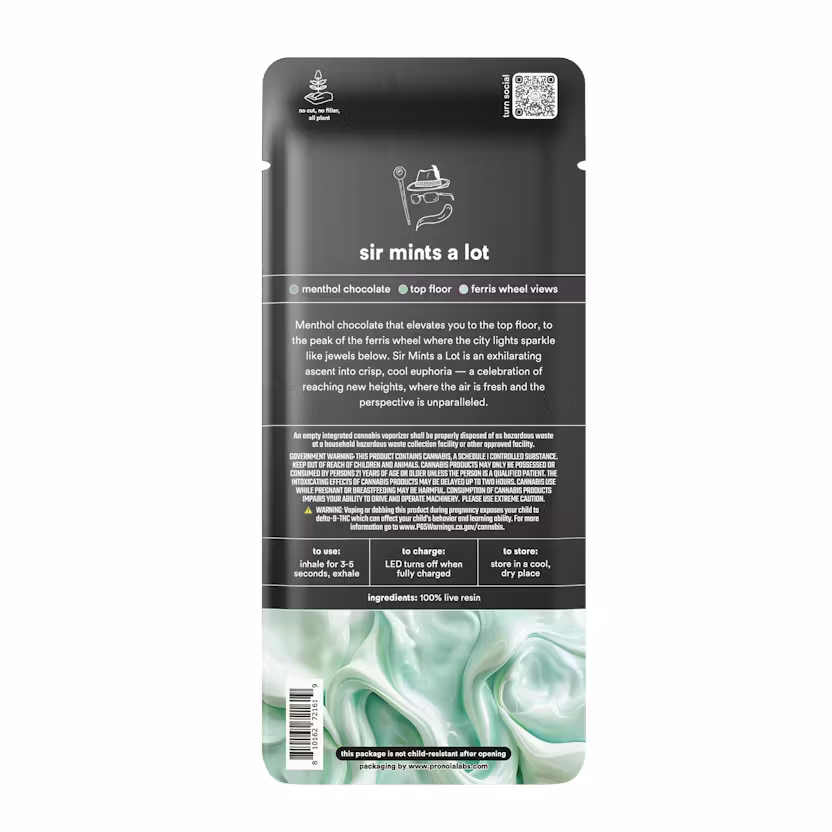Every puff captures the authentic Sir Mints A Lot experience, from aroma to effect.