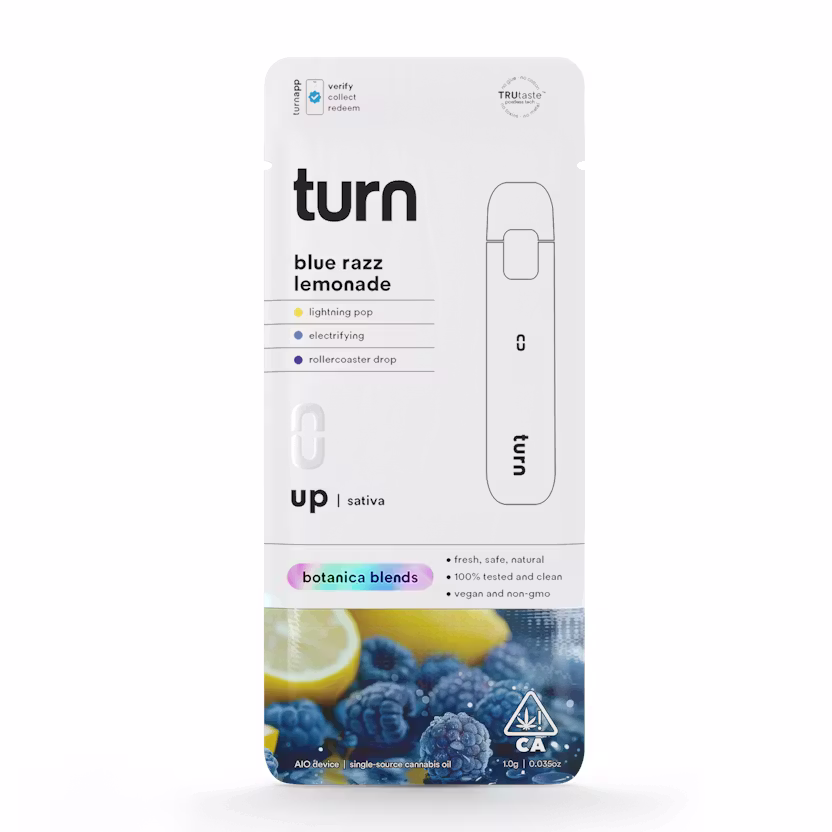 Turn Disposable 1G AIO Blue Razz Lemonade Botanica Blends Sativa Weed Pen