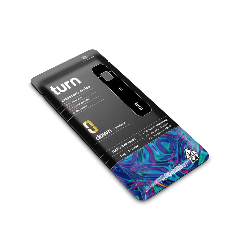 Elevate your vaping experience with the Turn Disposable 1G AIO Crenshaw Melon 100% Live Resin Hybrid Weed Pen. Perfect for users who want a flavor-rich, high-potency disposable THC weed pen, this premium device delivers true-to-strain live resin taste paired with the powerful effects of 94.20% THC. Enjoy smooth vapor, bold melon flavor, and reliable performance in a ready-to-use format built to fit seamlessly into your lifestyle.