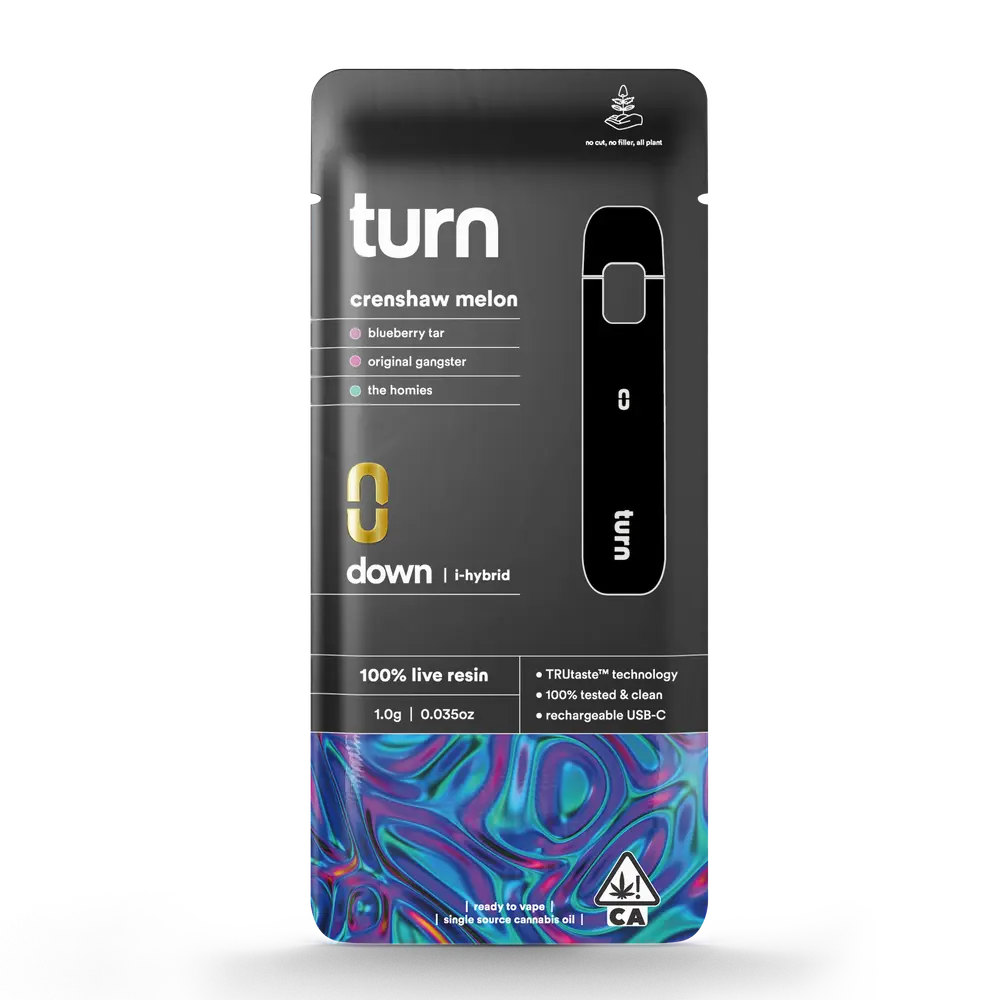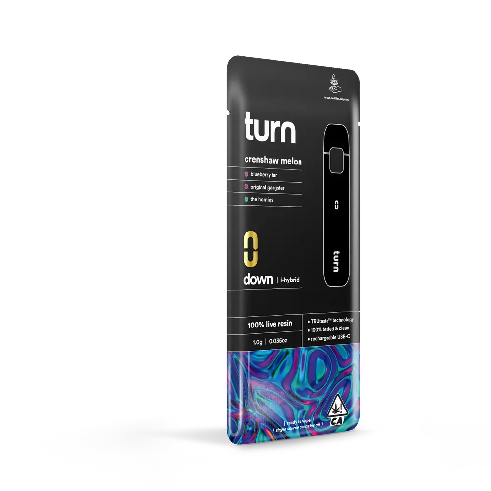 Turn Disposable 1G AIO Crenshaw Melon 100% Live Resin Hybrid Weed Pen