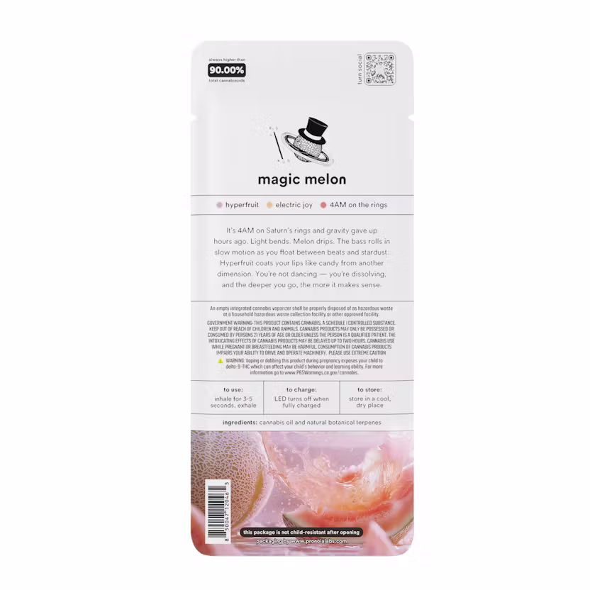 The Magic Melon flavor profile bursts with tropical sweetness, combining honeydew and cantaloupe notes with subtle hints of citrus for a balanced, refreshing taste. Each inhale delivers a smooth and creamy puff, enhanced by carefully selected botanical terpenes that amplify flavor while providing aromatic depth. Turn Botanica Blends ensure flavor consistency throughout the entire gram, making Magic Melon a perfect choice for users who enjoy fruity, juicy, and memorable cannabis flavors. Its bright and tropical taste makes every puff a flavorful delight.