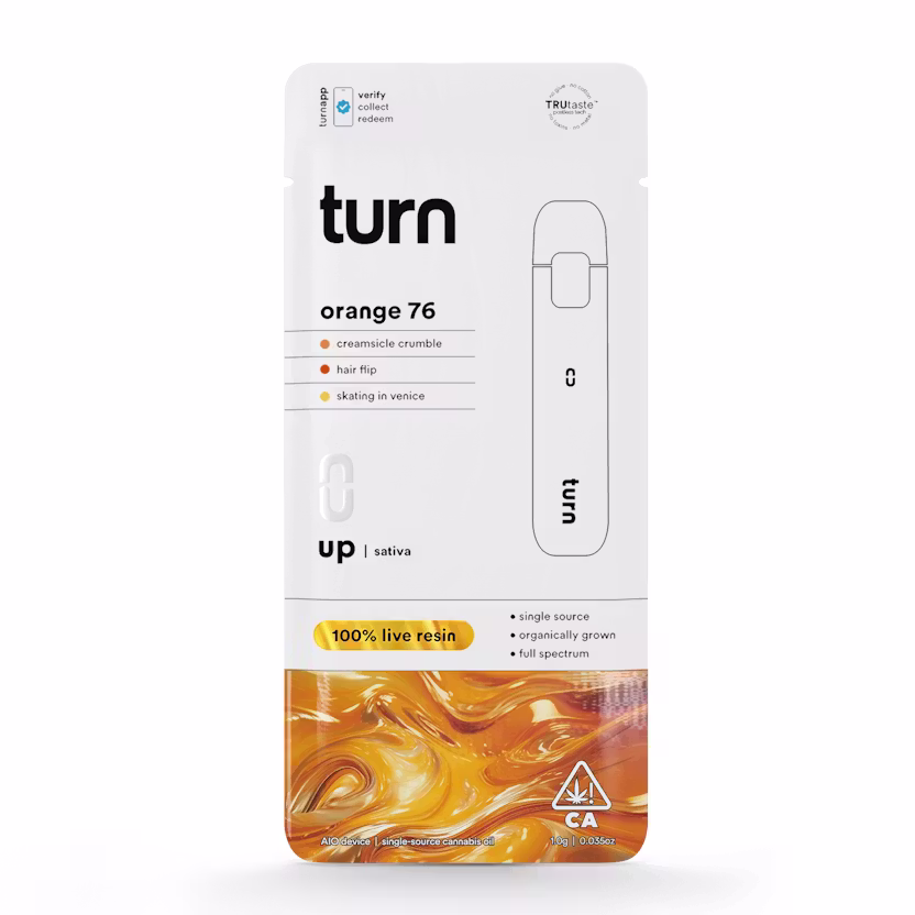 Whether you’re starting your morning, staying productive, or enjoying an outdoor adventure, the Turn Orange 76 AIO weed pen provides consistent vapor, bold citrus flavor, and reliable effects from the first inhale to the last.