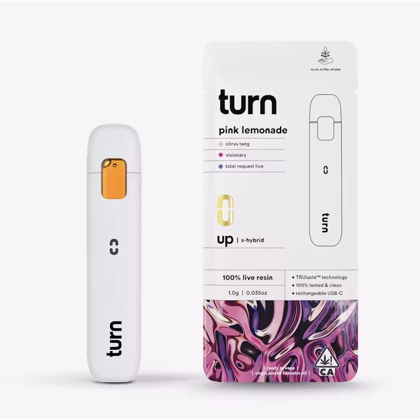 Turn Disposable 1G AIO Pink Lemonade 100% Live Resin Hybrid Weed Pen