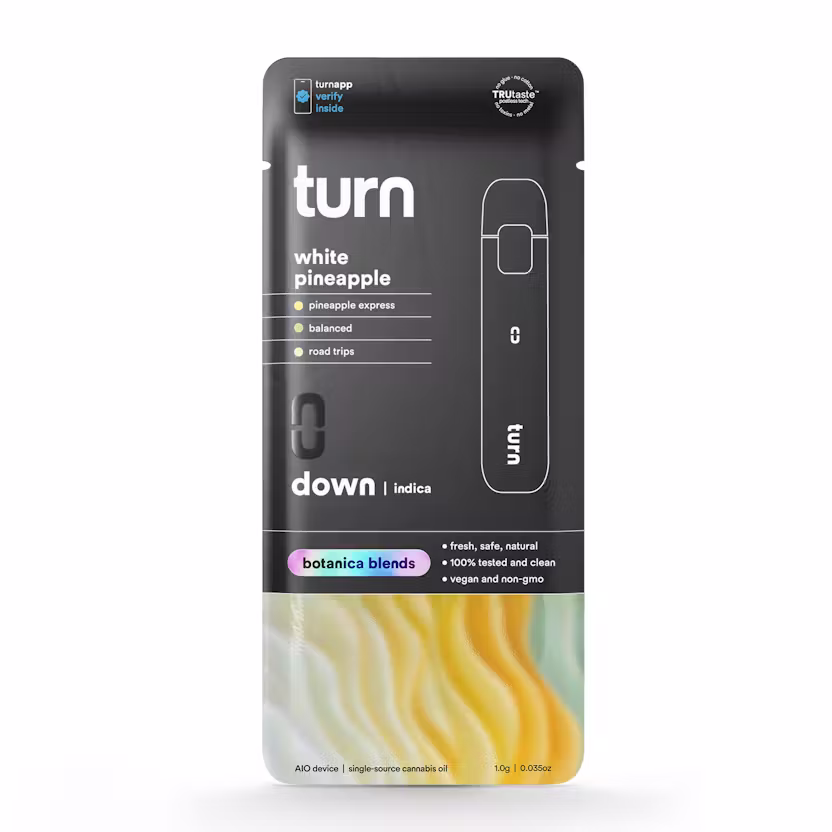Turn Disposable 1G AIO White Pineapple Botanica Blends Indica Weed Pen – 94.35% THC