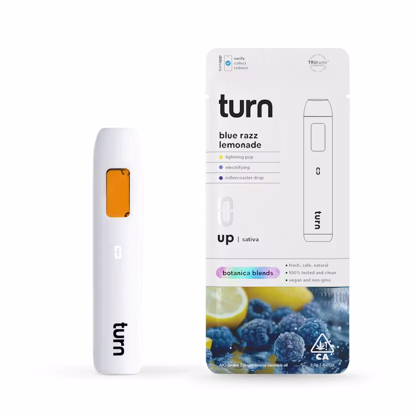 Turn Disposable 2G AIO Blue Razz Lemonade Botanica Blends Sativa Weed Pen – 90% THC