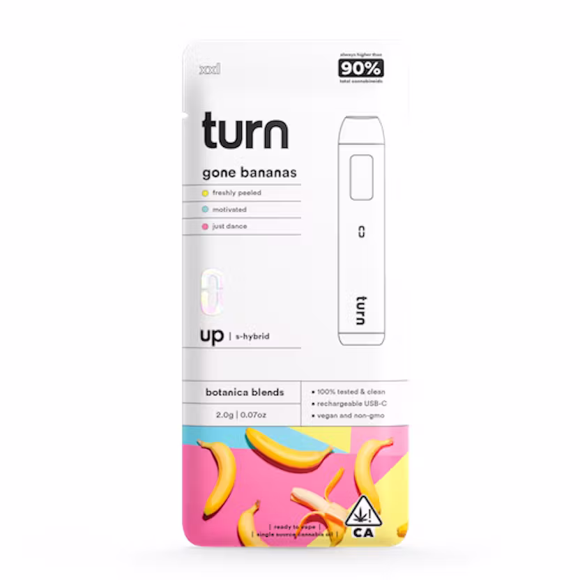 Turn Disposable 2G AIO Gone Bananas Botanica Blends Hybrid Weed Pen – 90% THC
