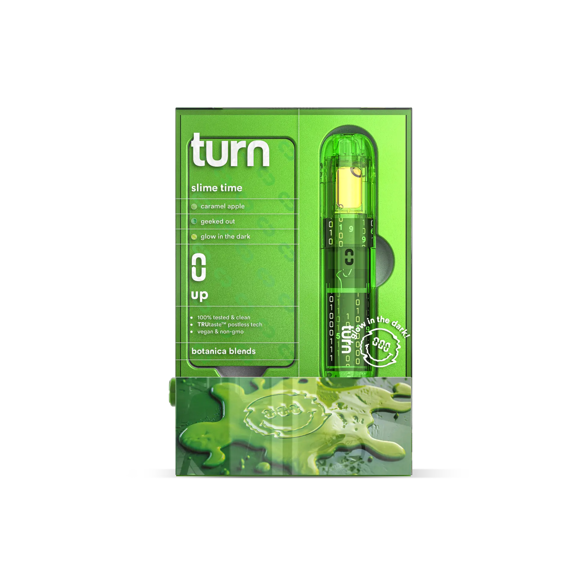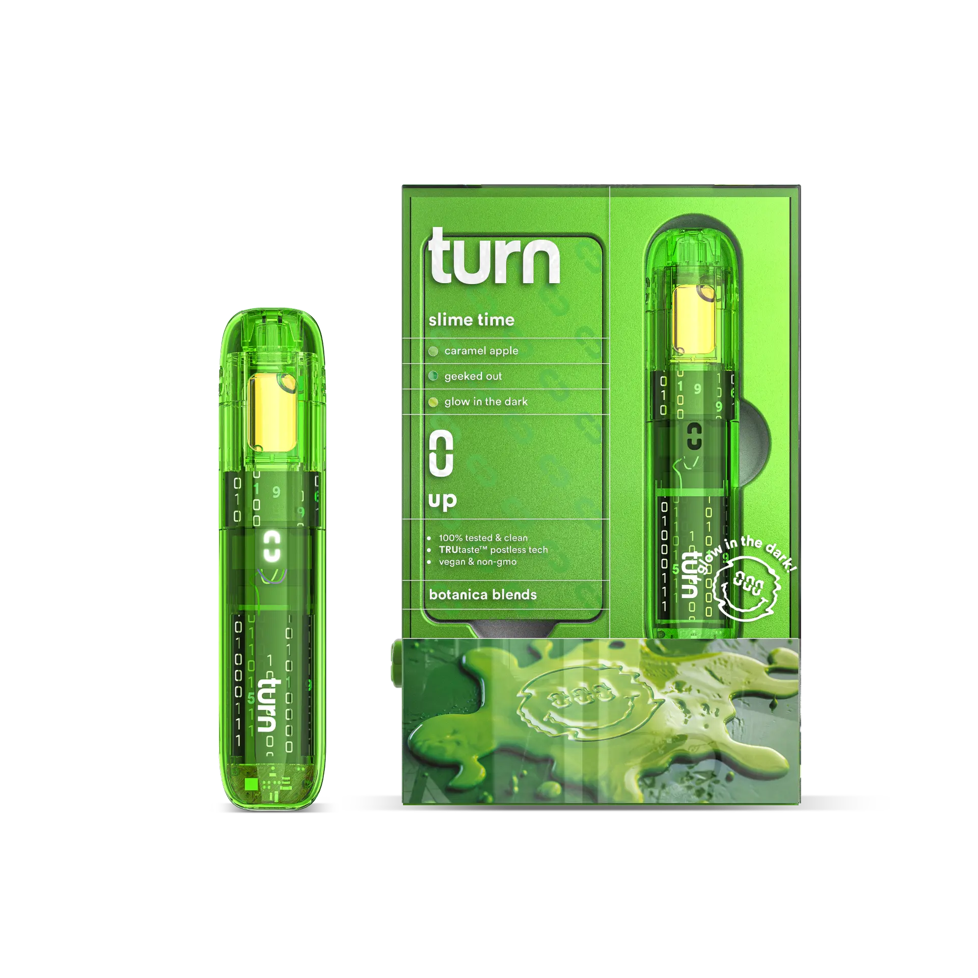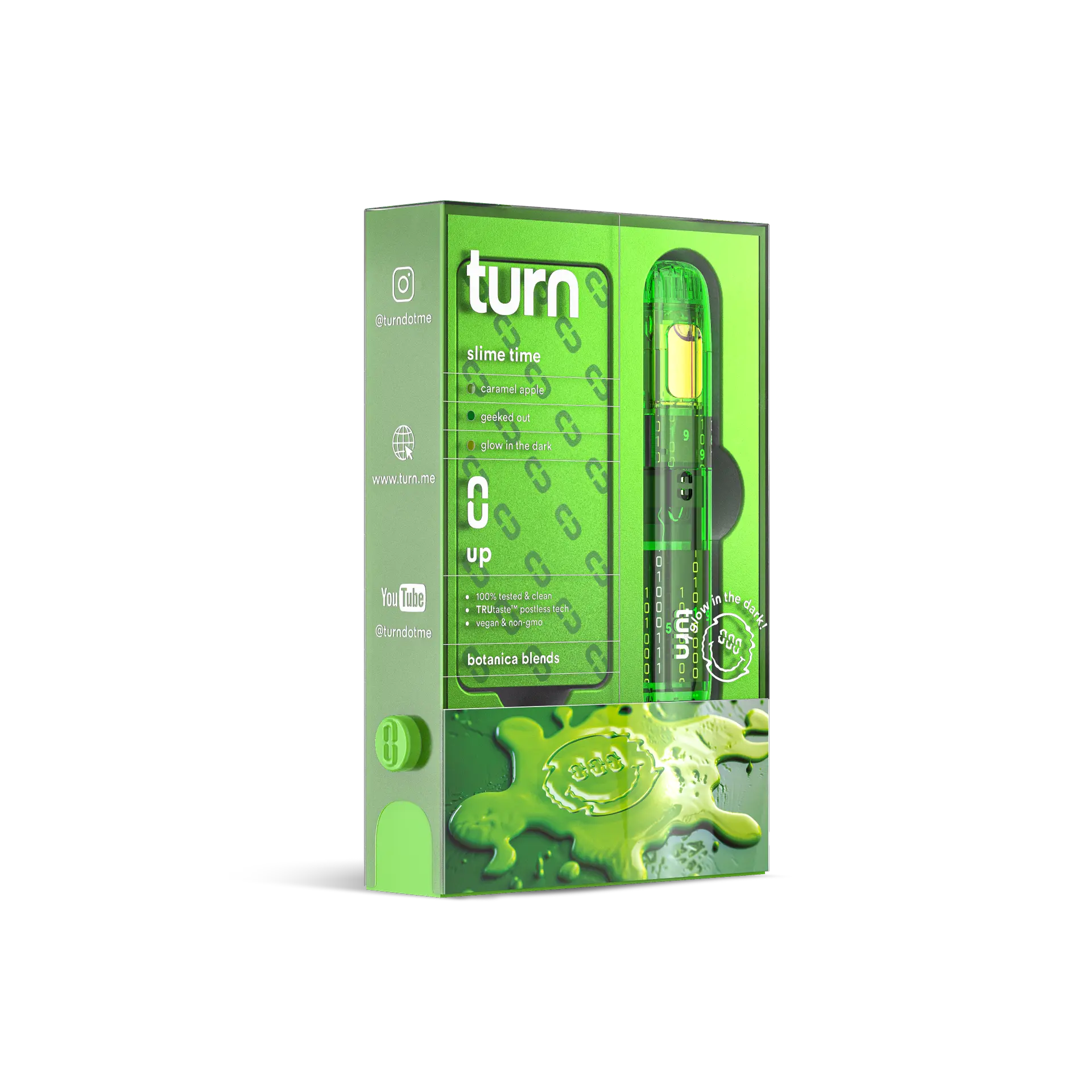 Crafted with Turn’s signature Botanica Blends, the Slime Time disposable pen delivers a vibrant and aromatic flavor experience. Each inhale unveils sweet tropical and citrus notes, accented by subtle herbal undertones, creating a bold yet balanced taste profile.