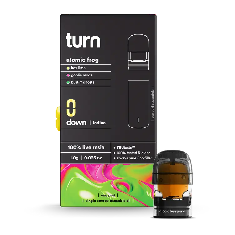 If you are searching for a high-THC live resin vape pod that offers potent performance and authentic strain flavor, Turn Pods Atomic Frog 1G is an excellent choice.