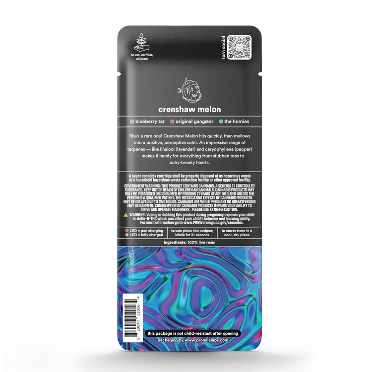 The Turn Pods Crenshaw Melon 1G 100% Live Resin THC Vape Pod is designed for cannabis users who want strong potency, smooth vapor, and authentic flavor in a convenient pod format. With approximately 90% THC, this hybrid vape pod delivers balanced effects that combine uplifting mental clarity with gentle body relaxation. Made with 100% live resin extract, it preserves the natural cannabinoids and terpenes of the cannabis plant for a flavorful and true-to-strain experience. Built for compatibility with the Turn Podpen system, this pod offers reliable performance and easy use for every session.