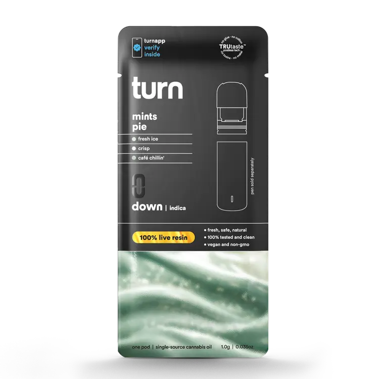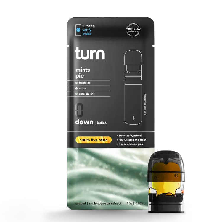 Turn Pods Mints Pie 1G 100% Live Resin THC Vape Pod – Indica THC 90%