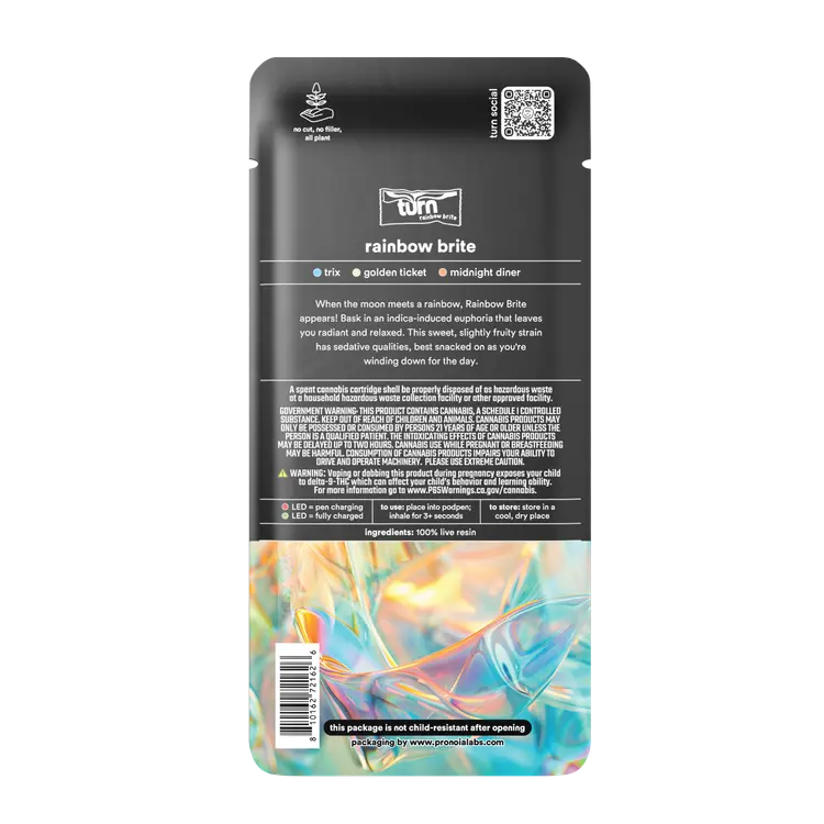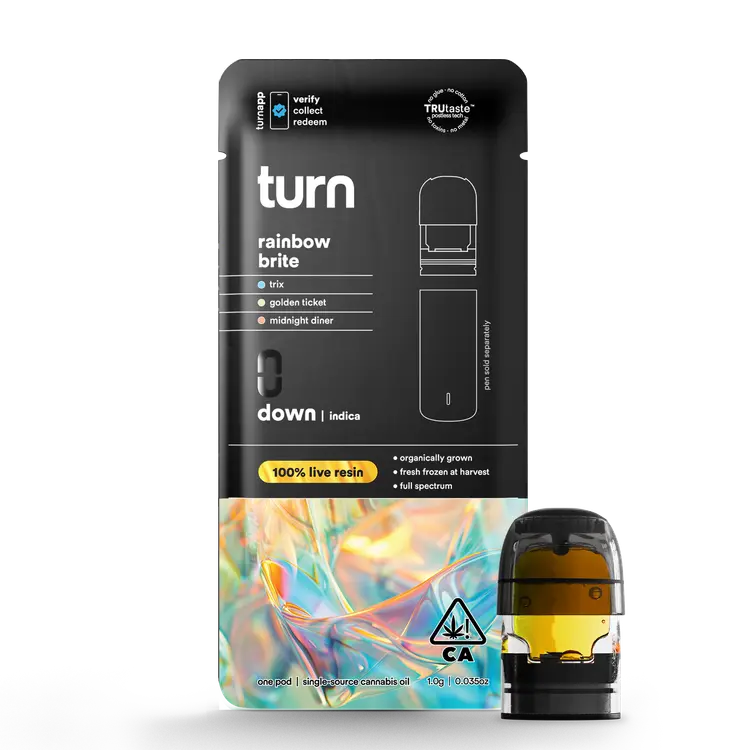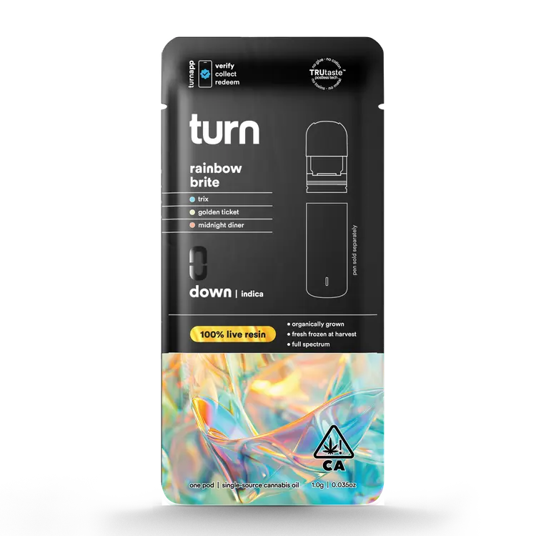 Turn Pods Rainbow Brite 1G 100% Live Resin THC Vape Pod – Indica THC 90%