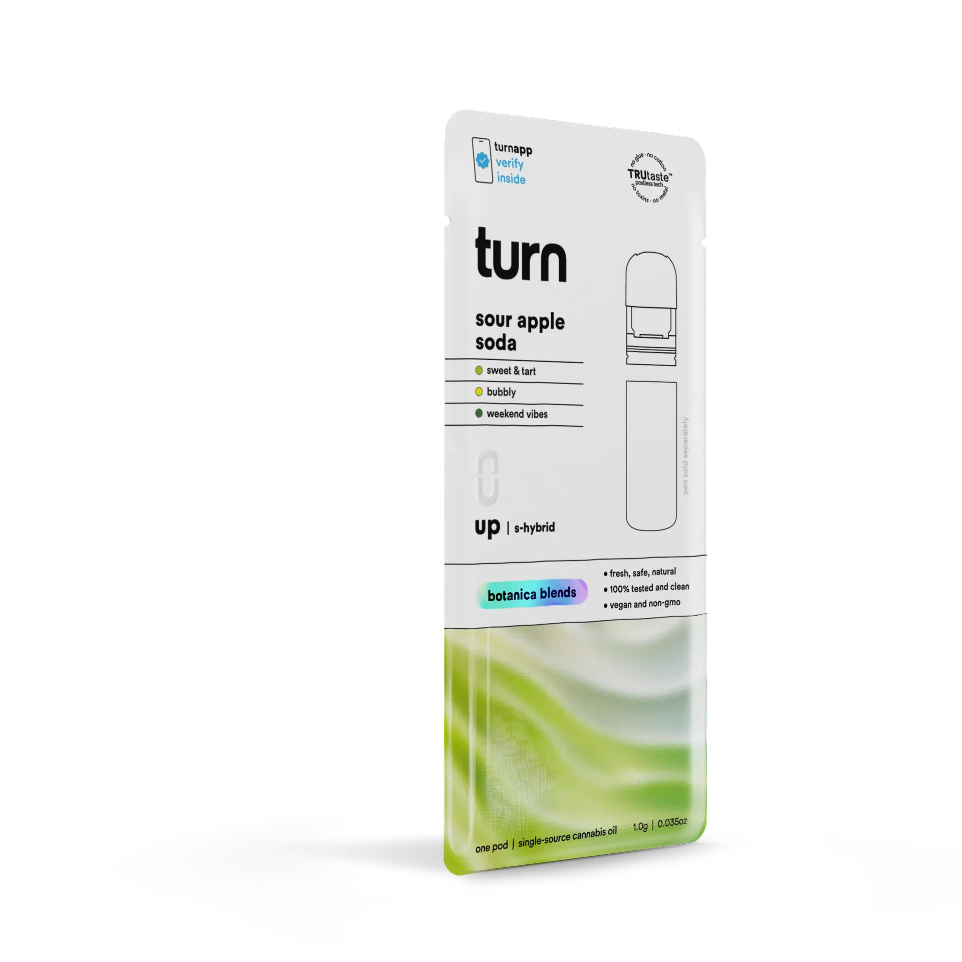 Turn is known for its commitment to quality, consistency, and modern cannabis design. Each Sour Apple Soda pod is produced to meet strict standards, ensuring smooth vapor, reliable potency, and consistent flavor throughout its lifespan. The Botanica Blends formulation delivers clean taste and performance that users can trust.