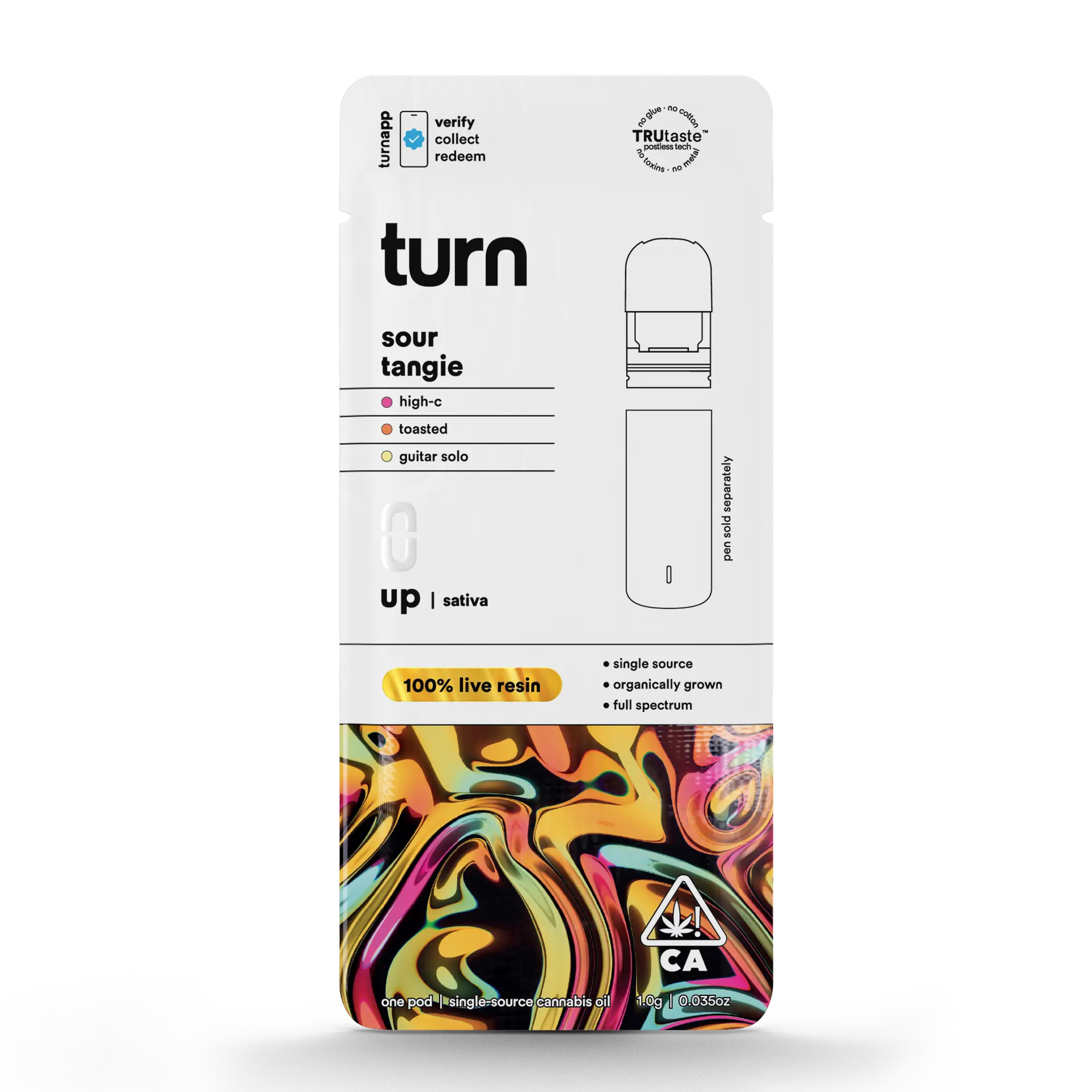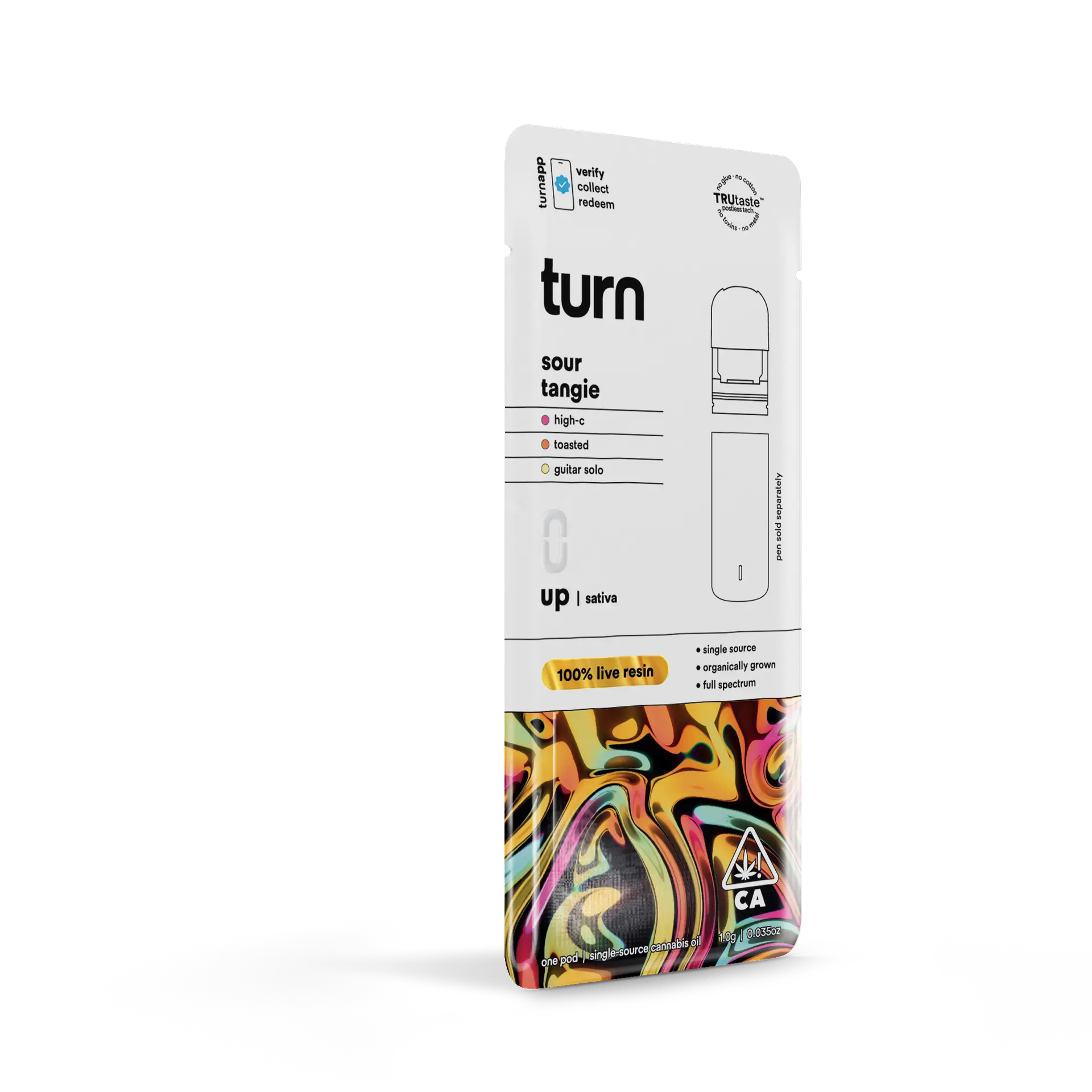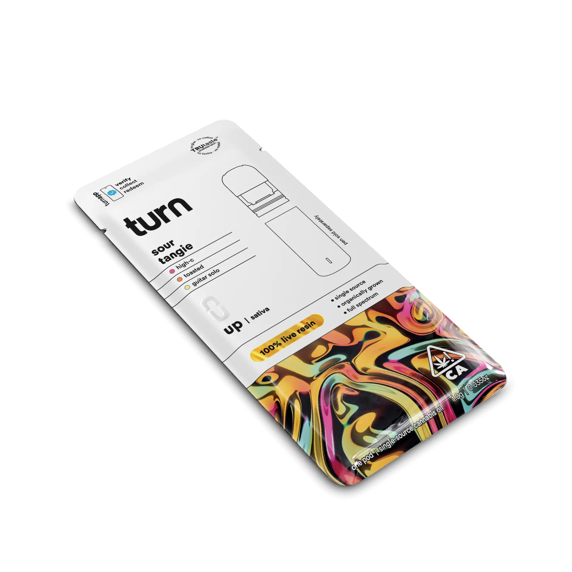 The Turn Pods Sour Tangie 1G 100% Live Resin THC Vape PodPen combines high THC potency, authentic citrus flavor, and premium live resin extraction.