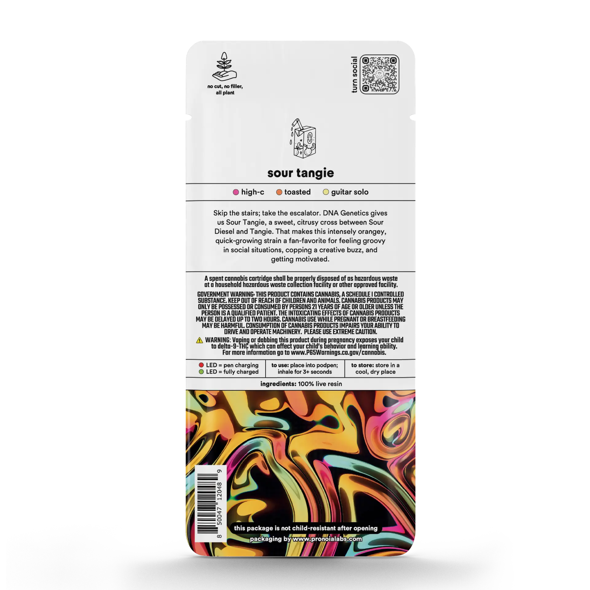 The Turn Pods Sour Tangie 1G 100% Live Resin THC Vape PodPen delivers a premium sativa experience built for flavor, potency, and consistency. Made with 100% live resin and testing at 88.2% THC, this vape pod is designed for users who want strong effects with a true-to-strain taste. Engineered specifically for Turn PodPen devices.