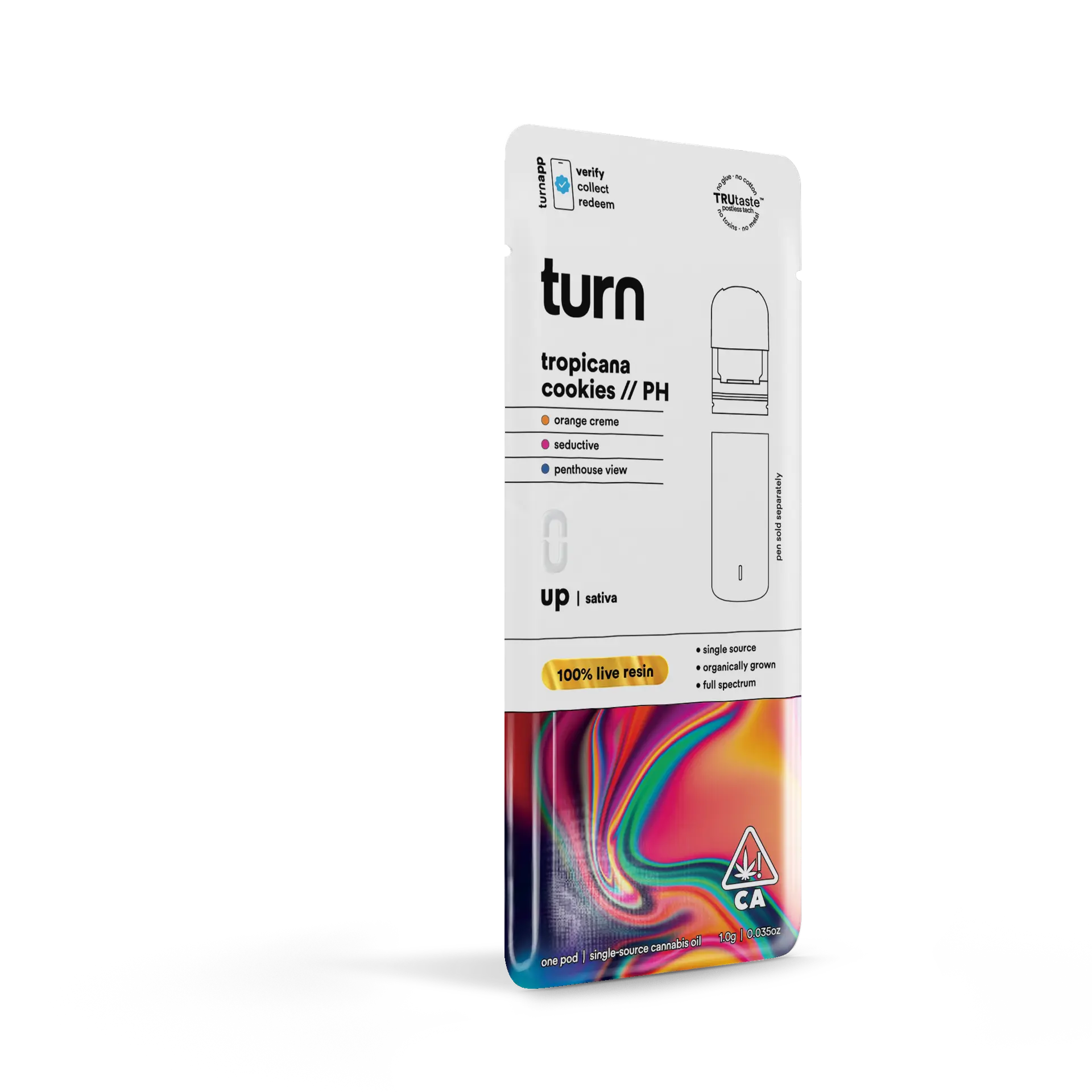 Turn Pods Tropicana Cookies // PH 1G 100% Live Resin THC Vape Pod – Hybrid (76.62% THC)