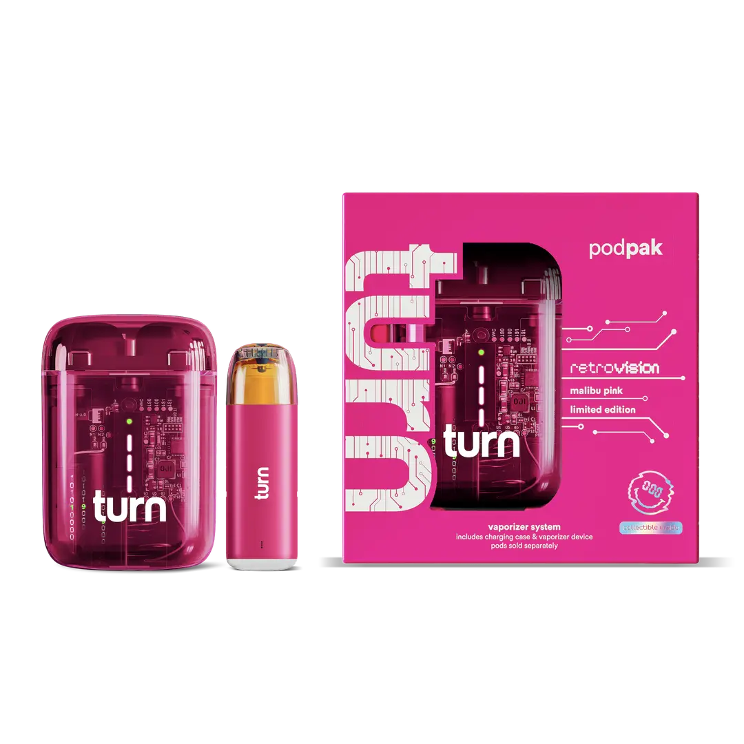 Turn Retrovision Malibu Pink Transparent Podpak – Dual-Pod Vape Kit with Long-Lasting Battery