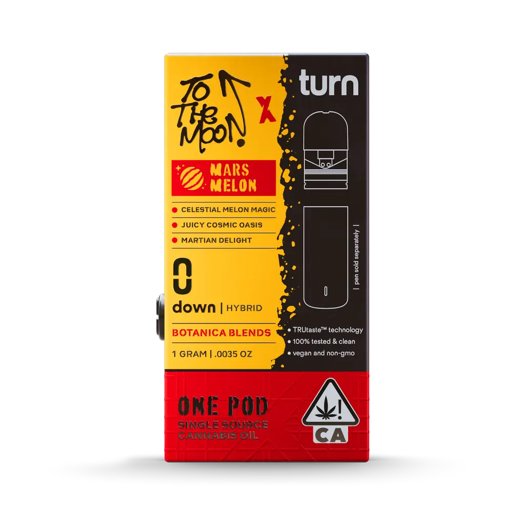 The Turn x To The Moon Mars Melon 1G THC Disposable Vape – Hybrid is a high-potency weed pen designed for users who want bold flavor, balanced effects, and consistent performance in a sleek, all-in-one device. With a powerful 95% THC concentration, this premium THC disposable delivers fast-acting, long-lasting results with every smooth inhale. The Mars Melon flavor profile blends sweet, juicy melon notes with a subtle candy-like finish, creating a refreshing and satisfying vaping experience that stands out in the world of high-THC vape pens.